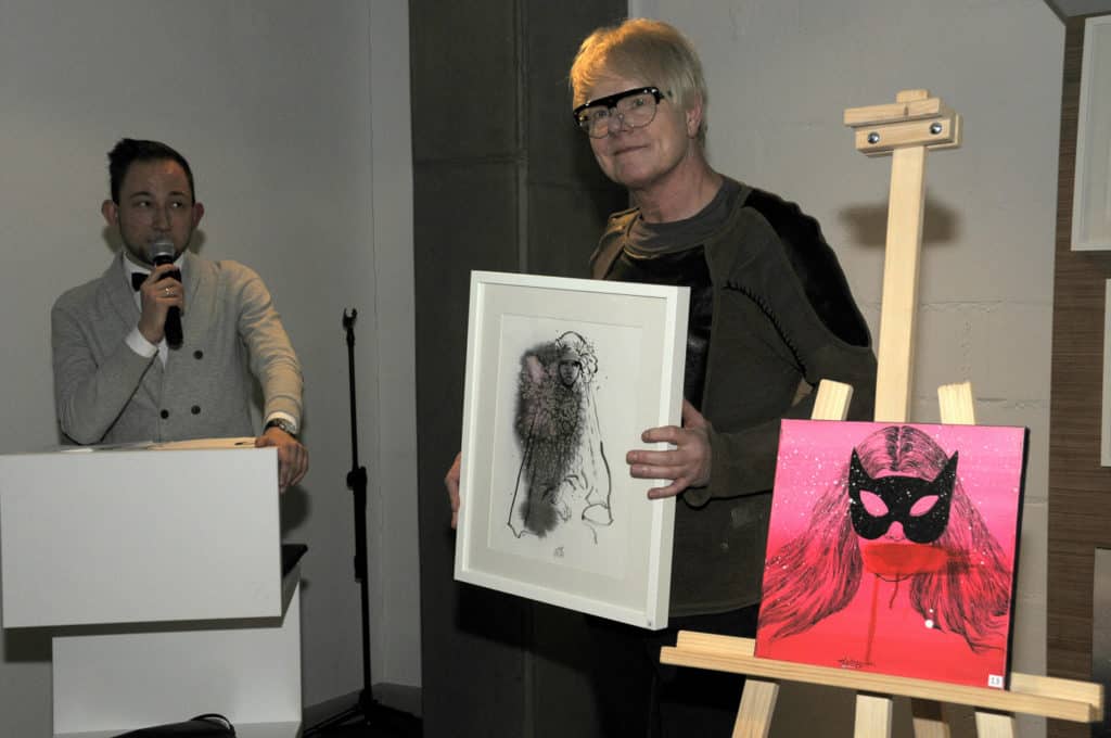 PEEK-A-BOO”- wydarzenie objęło wystawę prac Anny Halarewicz, które powstały na przełomie ostatnich lat, oraz aukcję wybranych dzieł. Anna Halarewicz, to niewątpliwie jedno z najgorętszych nazwisk młodego pokolenia w świecie artystycznym. Jej charakterystyczna kreska, mocna plama koloru i mariaż ze światem mody sprawiają, że jej prac nie sposób pomylić. Aukcję poprowadził Jarosław Milner, aktor, dziennikarz, prezenter radiowy, lektor, gospodarz wielu prestiżowych imprez.