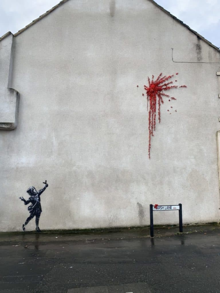 Z okazji Święta Zakochanych Banksy zaskoczył mieszkańców Bristolu (miasto pochodzenia artysty) i przygotował dla nich specjalną niespodziankę – mural walentynkowy. Praca przedstawia dziewczynkę, która wystrzeliła z procy czerwone kwiaty.