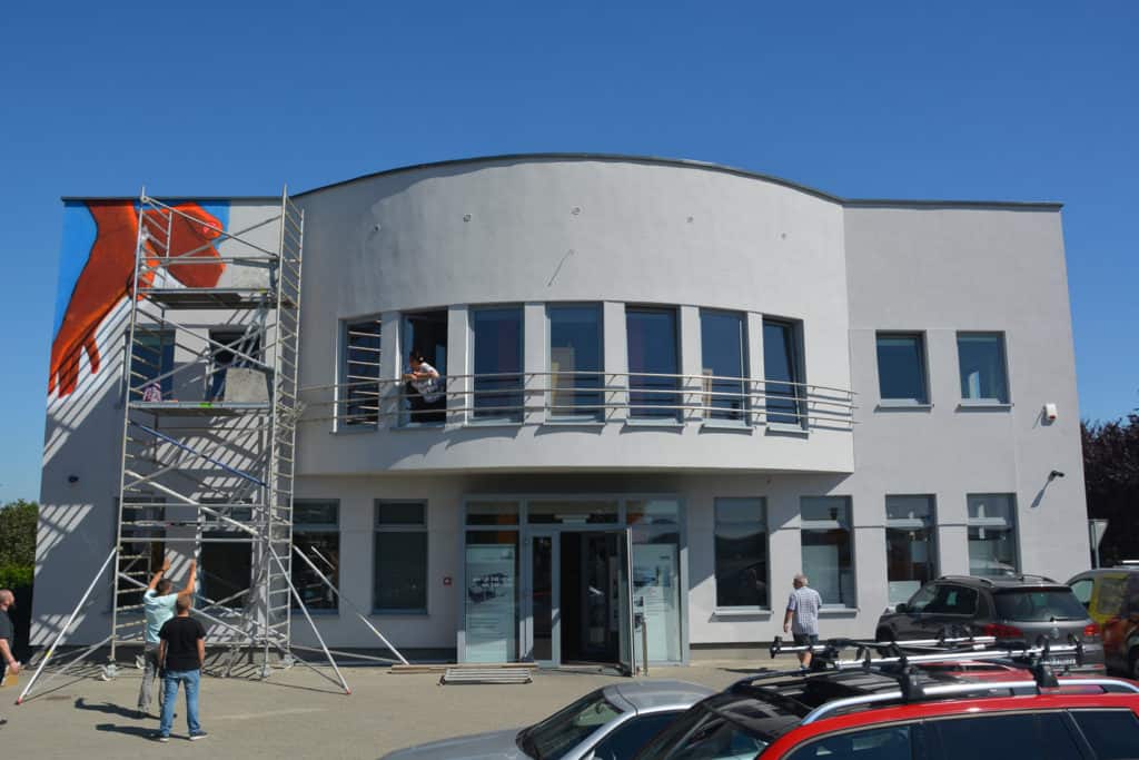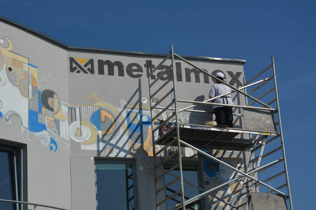Prace rozpoczęły się w drugiej połowie sierpnia. Mural nabierał kształtów przez 15 dni i to zarówno na fasadzie budynku, ale też rodził się w wyobraźni zaciekawionych osób, mijających ul. Wierzbową w Wysogotowie.Projekt został właśnie ukończony! Na froncie Metalmex’u pojawił się – przyprawiony fantazją – „kawałek ciała” i „kawałek mebla”.