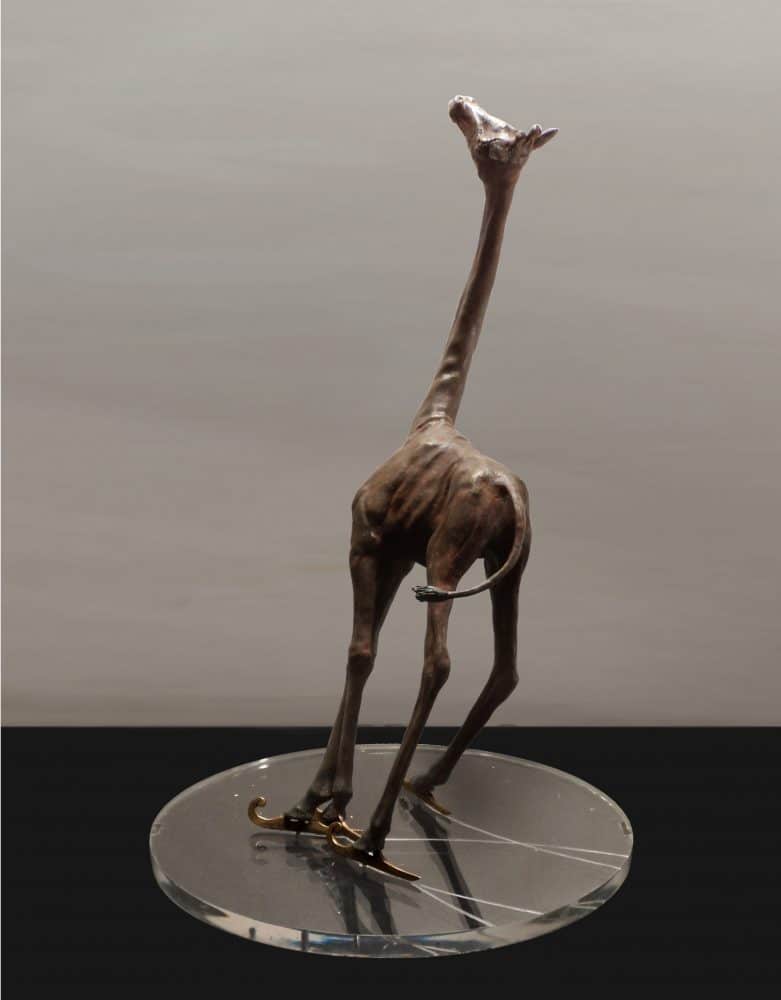 Uhonorowana najwyższym wyróżnieniem Grand Prix Legnickiego Satyrykonu praca pt. “Zmiany klimatyczne” to rzeźba z brązu przedstawiająca żyrafę, której nogi plączą się podczas jazdy na łyżwach.