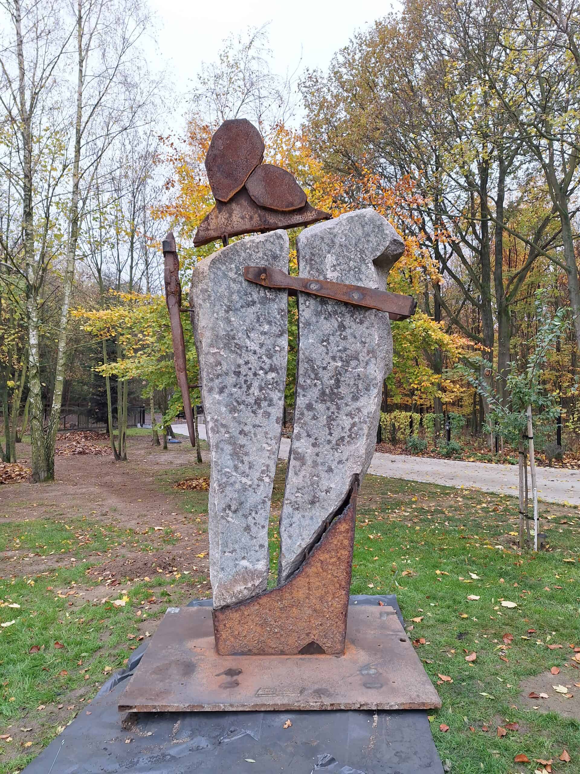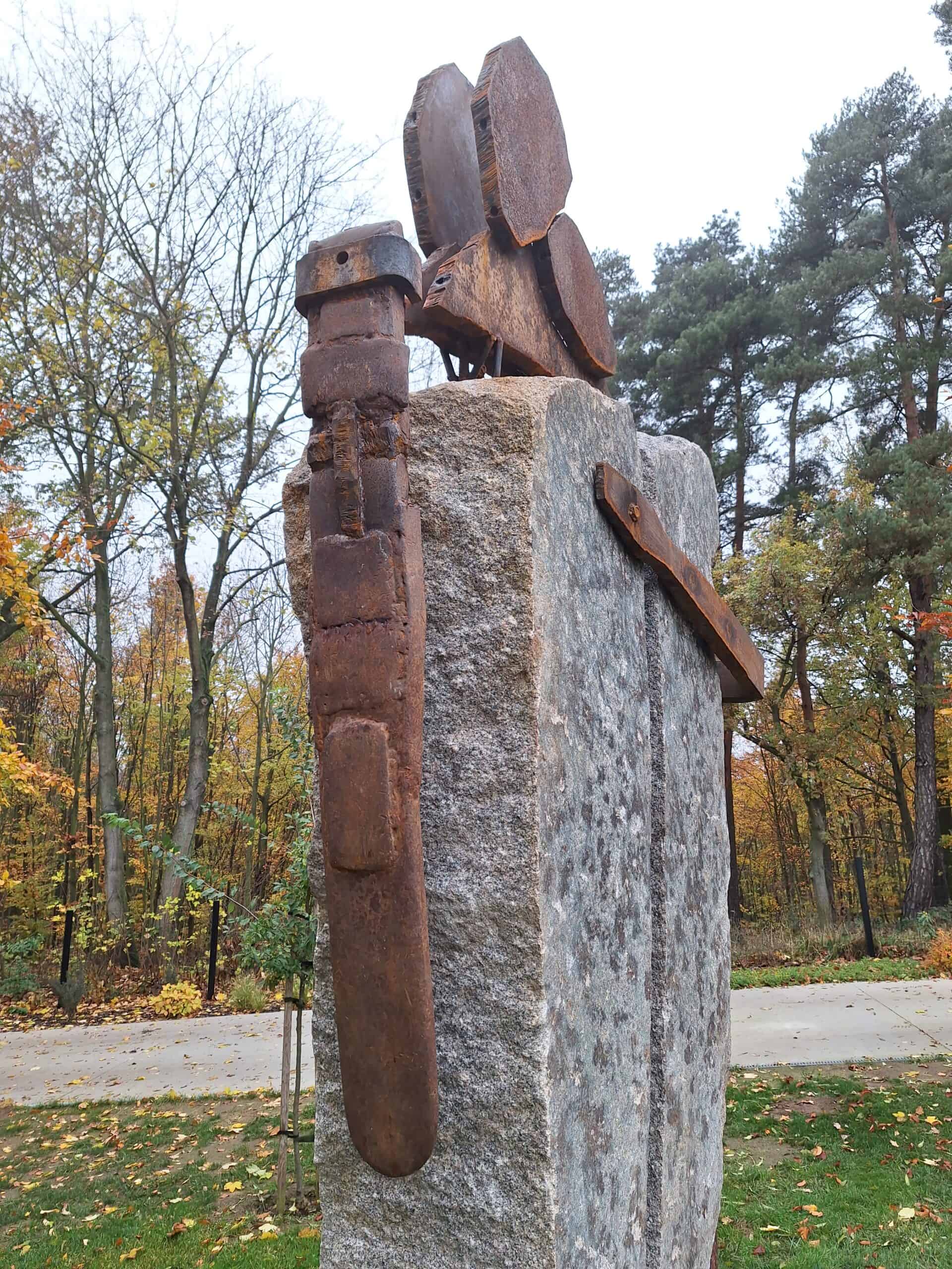 format – wysokość 340 cm technika własna, kamień- granit, metal