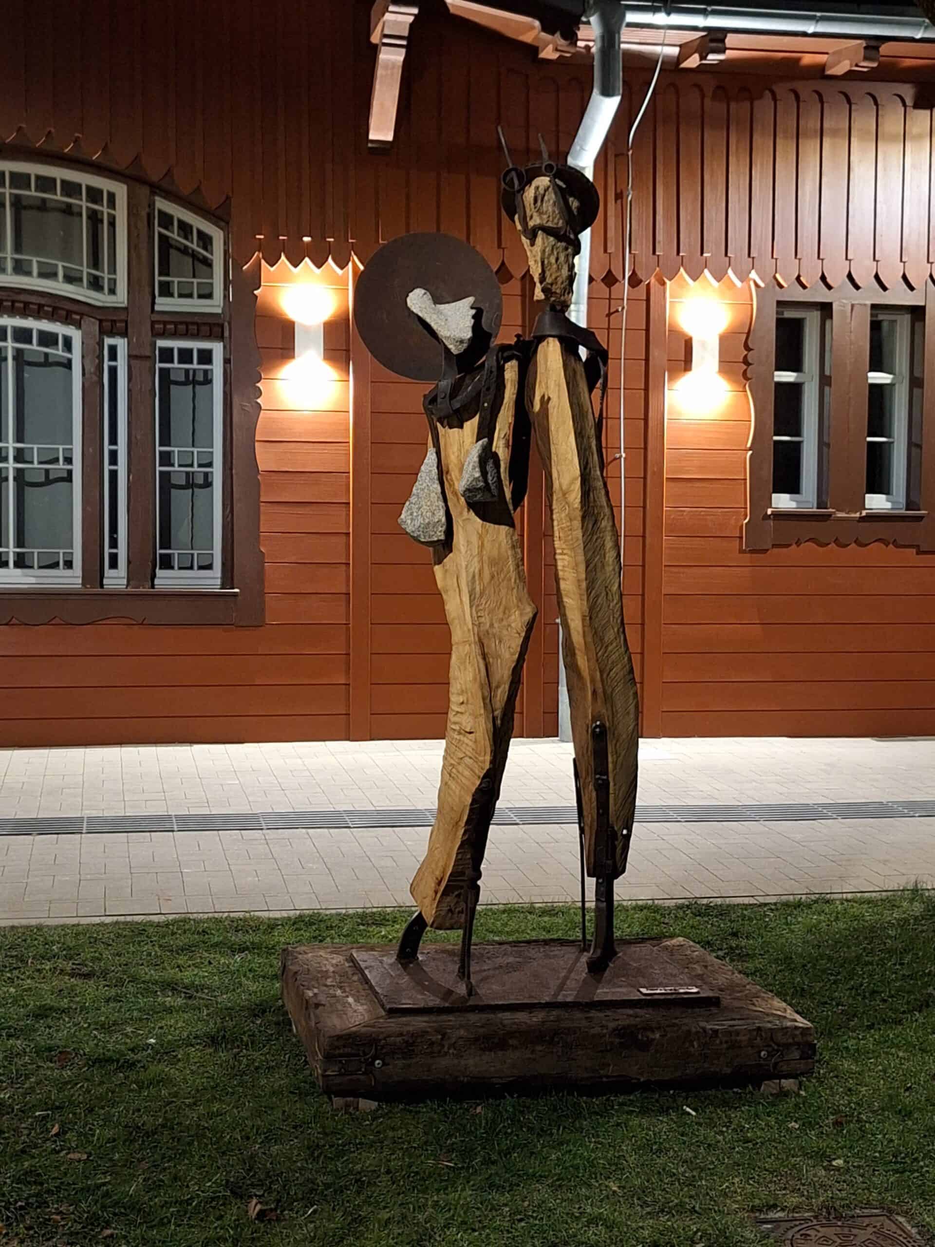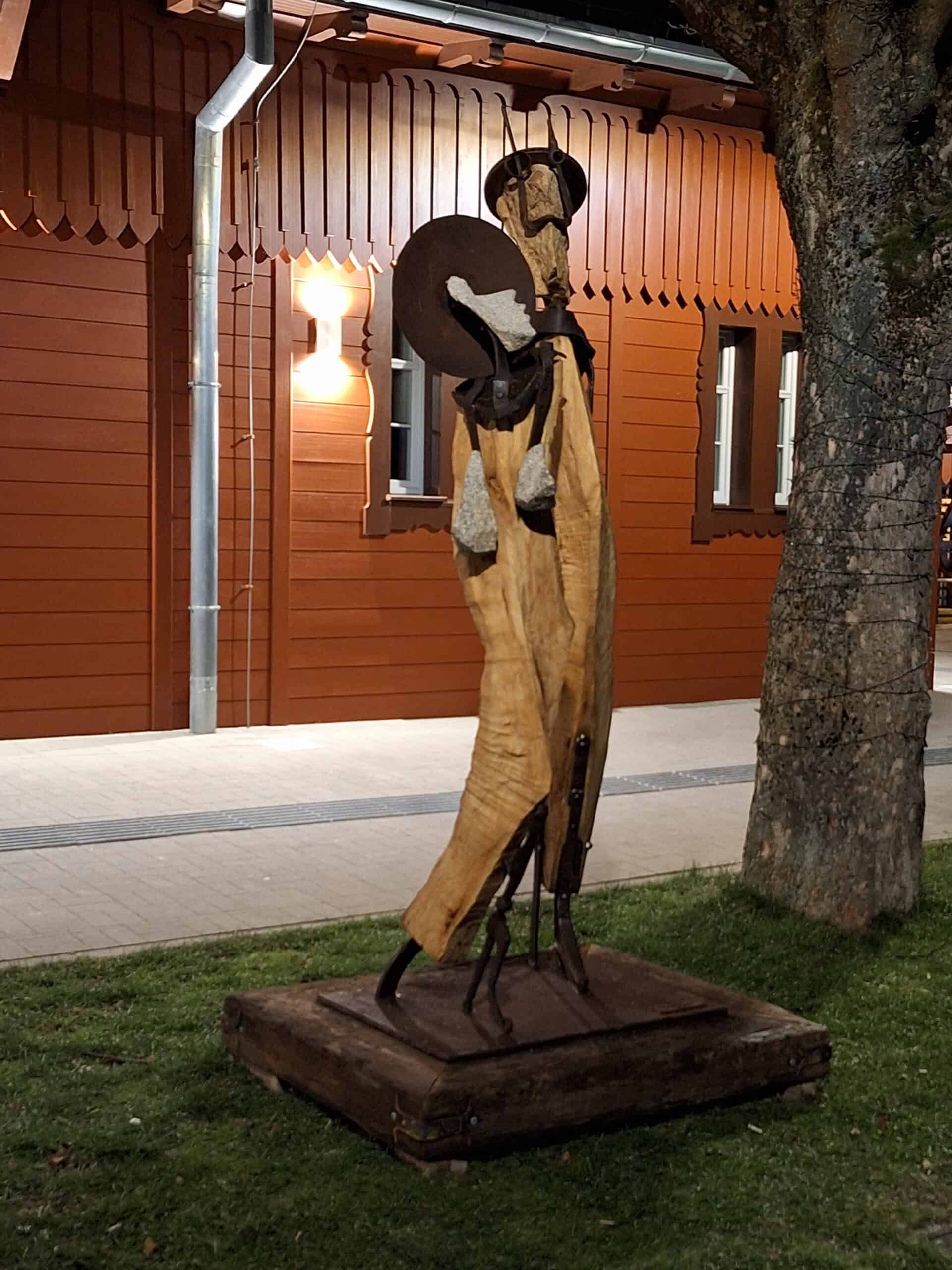 format – wysokość 250 cm technika własna- drewno jesionowe, kamień, metal