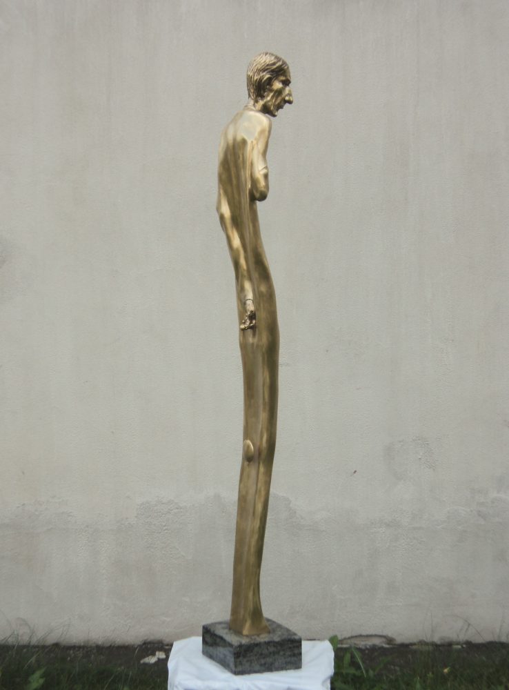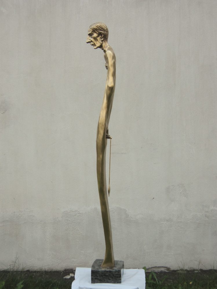 Dwa wymiary i czas to żart na temat czasoprzestrzeni, postać pozornie nie ma grubości postaci, portret pozornie nie ma szerokości. Uzupełnieniem jest wahadło trzymane przez postać, co ma żartobliwie wprowadzać czas do kompozycji.