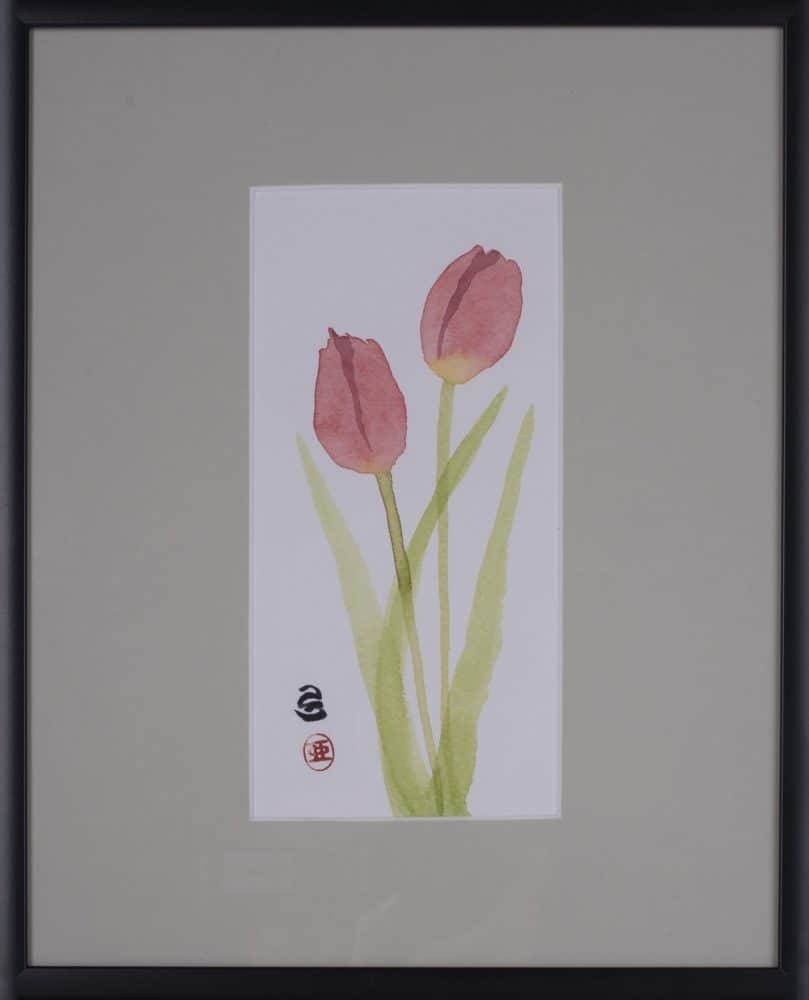 Sumi-e oprawiony za szkłem, wymiar z oprawą.