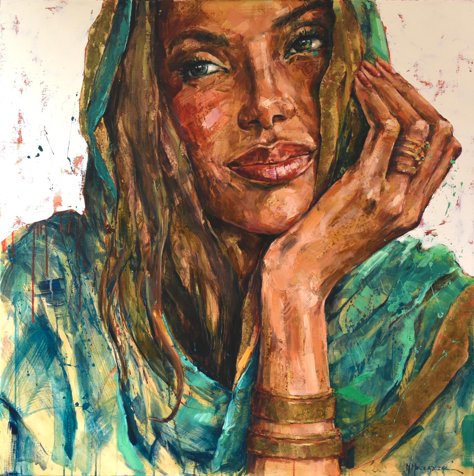 Technika: mieszana, olej, oksydowany szlagmetal na płótnie